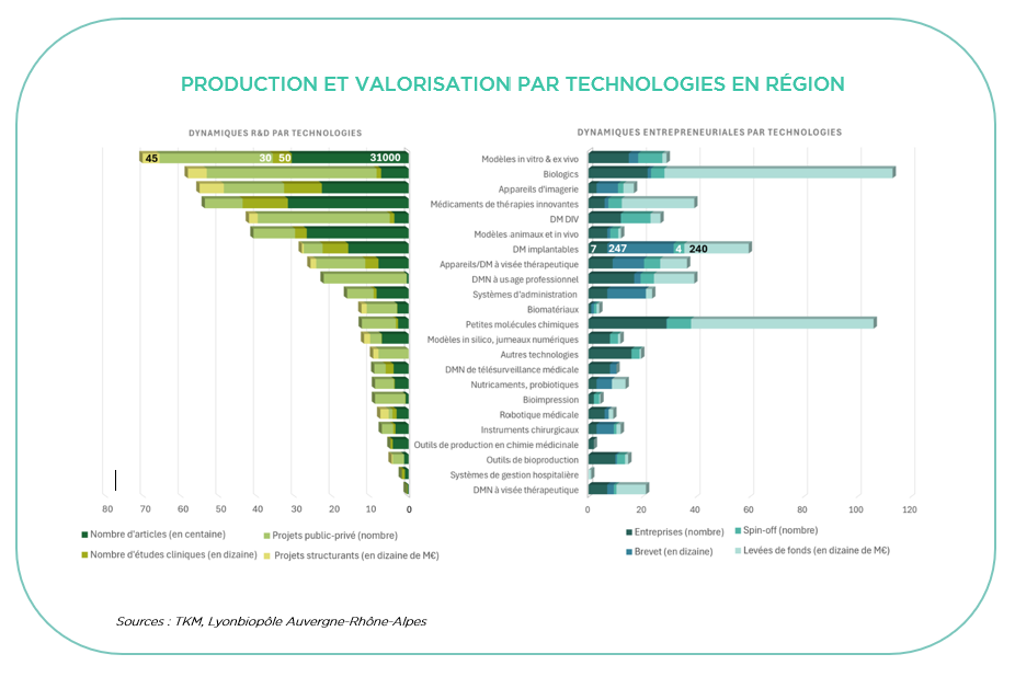 La région est caractérisée par une culture entrepreneuriale et un environnement favorable pour le transfert technologique à travers notamment de nombreux partenariats, l’essaimage de spin off universitaires et la création d’entreprises. Environ 25% des initiatives entrepreneuriales sont sur des activités de services technologiques donc multi-indications et à l’image de l’Europe, près de 50% des créations d’entreprises innovantes sont issues des laboratoires publics, 50% des autres créations étant le fait d’entrepreneurs « autonomes ».