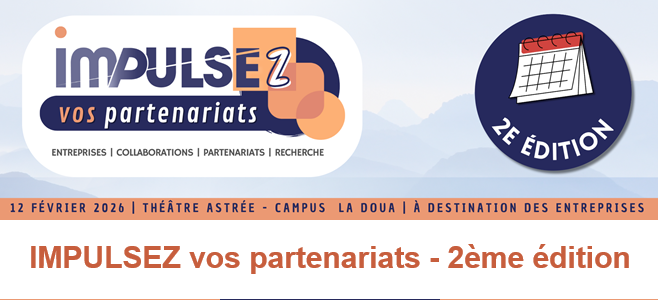 L’évènement IMPULSEZ vos partenariats – 2ème édition est organisé par les fondateurs du Pôle Universitaire d’Innovation IMPULSE, dédié au développement des collaborations entre la communauté scientifique et les entreprises.