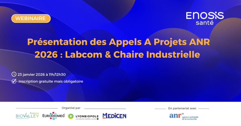 Dans le cadre de l’alliance française des pôles de compétitivité santé, Enosis Santé dont Lyonbiopôle est membre, nous vous convions, avec l’ANR, à un webinaire de présentation des dispositifs ANR Labcom et Chaire Industrielle.
